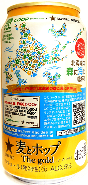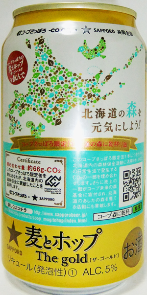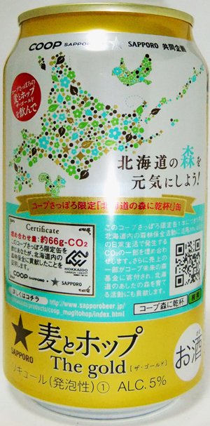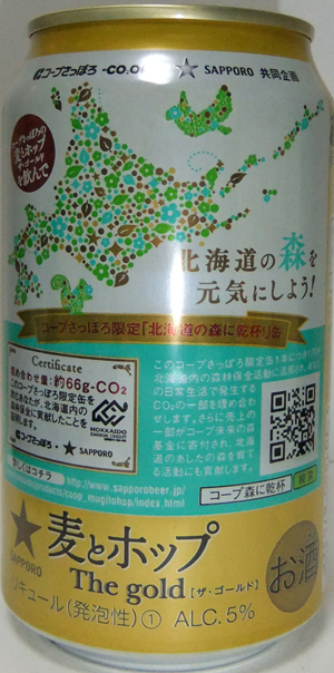 | 製造日 2014.6 | コープさっぽろ SAPPORO共同企画 コープさっぽろの麦とホップ ザ・ゴールドを飲んで 北海道の森を元気にしよう! | |