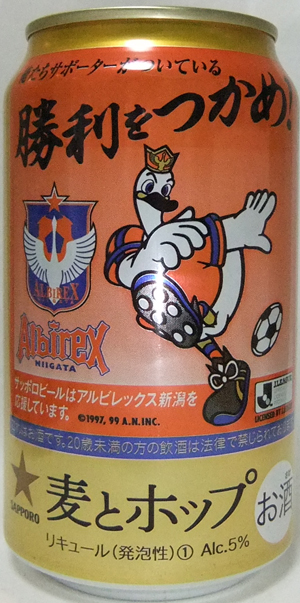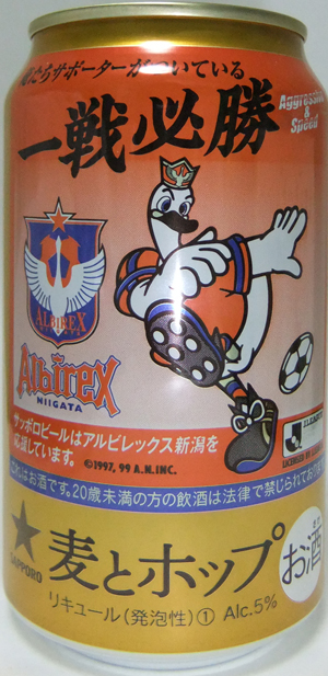 | 製造日 2012.2 | 俺たちサポーターがついている 猛進!新潟 サッポロビールはアルビレックス新潟を応援しています。 これはお酒です。20歳未満の方の飲酒は法律で禁じられております。 | |