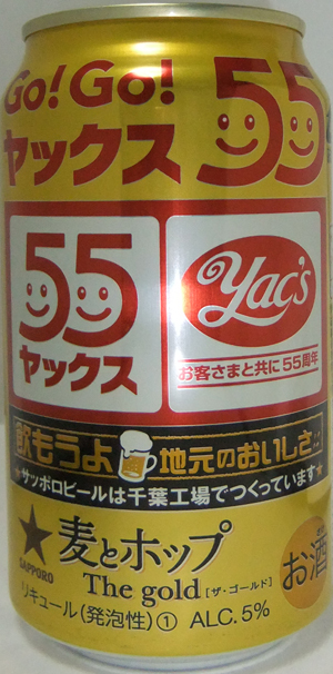 | 製造日 2015.6 | Go!Go!ヤックス 55ヤックス お客様と共に55周年 飲もうよ 地元のおいしさ サッポロビールは千葉工場でつくっています。 | |