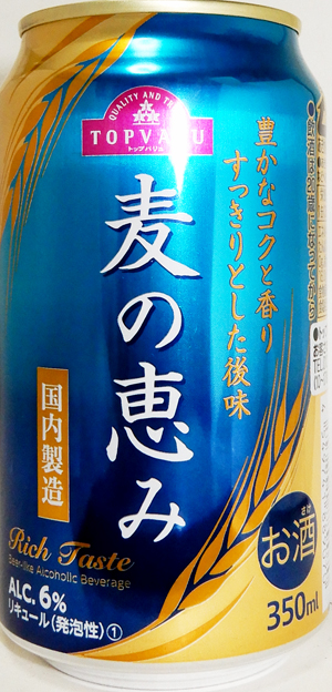 | 製造日 2017.6 | TOPVALU 国内製造 麦の旨みを感じるマイルドな味わいと、すがすがしい後味 品目:リキュール(発泡性)① イオングループ限定商品 | |