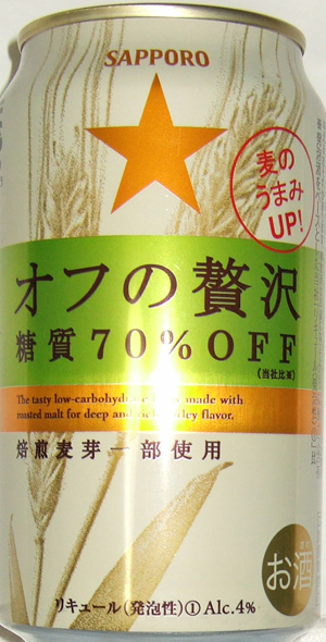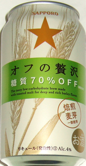 | 製造日 2009.10 | 糖質70%OFF 焙煎麦芽一部使用 The tasty low-carbohydrate brew made with roasted malt for deep and rich barley flavor. リキュール(発泡性)@ Alc.4% お酒 | |