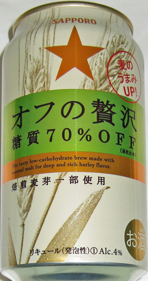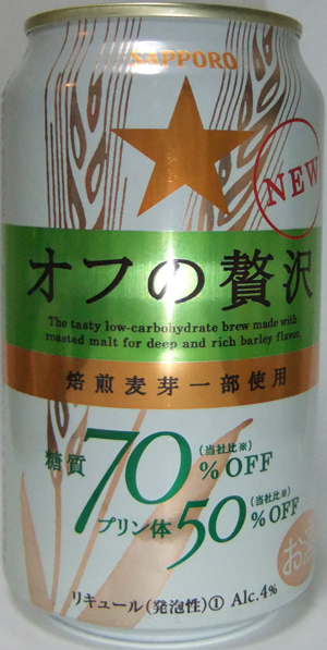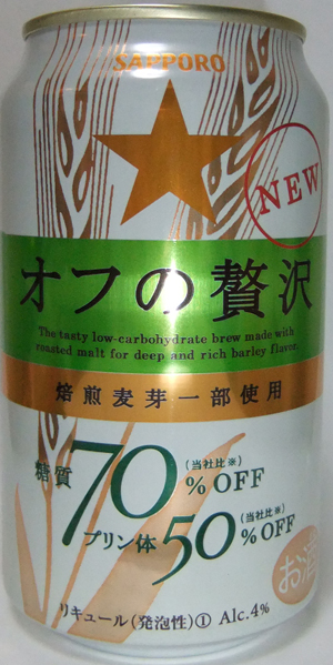 | 製造日 2009.8 | 表面糖質70%OFF 焙煎麦芽一部使用 The tasty low-carbohydrate brew made with roasted malt for deep and rich barley flavor. リキュール(発泡性)@ Alc.4% お酒 | |