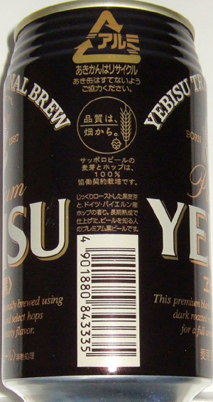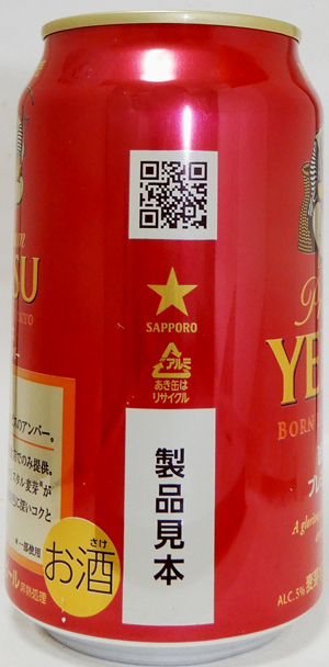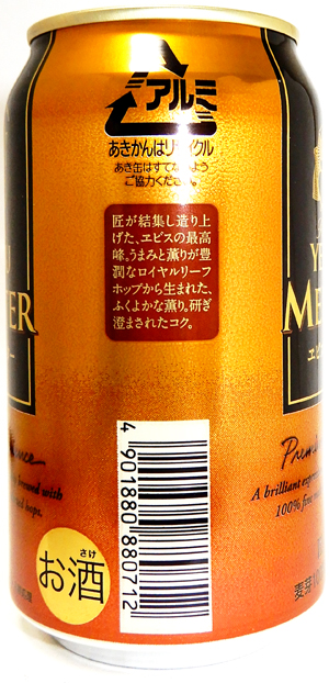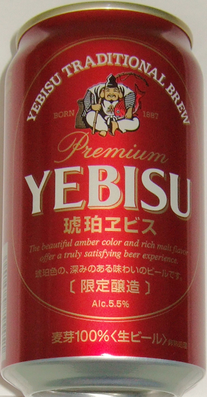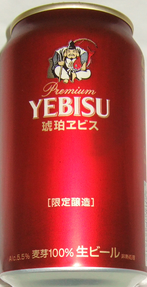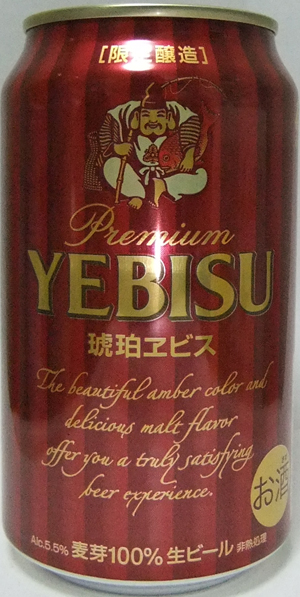 | 製造日 2008.10 | 限定醸造 PREMIUM YEBISU LIMITED BREWING the beautiful amber color and rich malt flavor offer a truly satisfying beer experience. Alc. 5.5% 麦芽100% | |