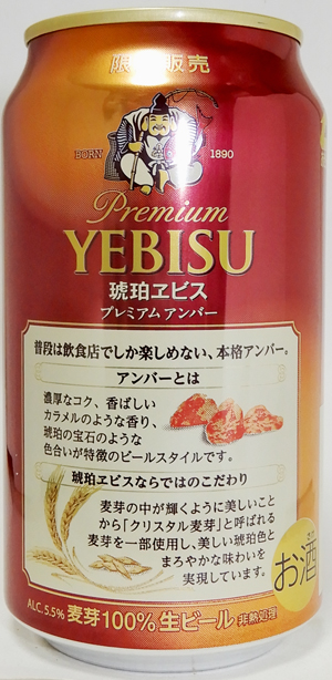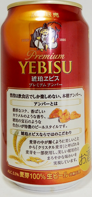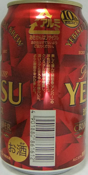 | 製造日 2015.6 | 10th琥珀エビス 限定醸造 麦芽100%生ビール PREMIUM YEBISU CRYSTAL AMBER正面 | |