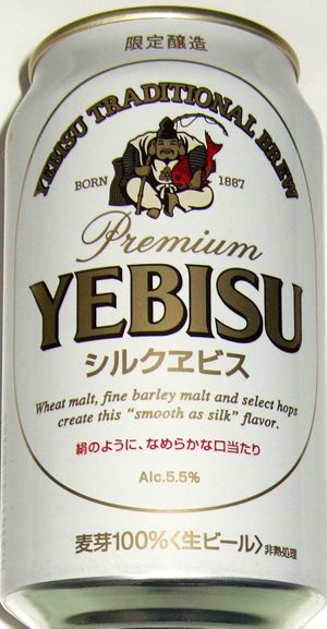 | 製造日 2009.2 | 絹のように、なめらかな口当たり Alc.5.5% Wheat malt, fine barley malt and select hops create this "smooth as silk" flavor. | |