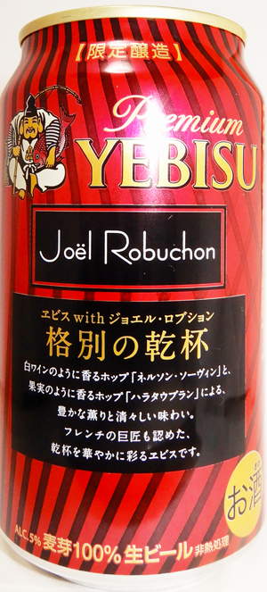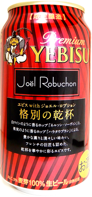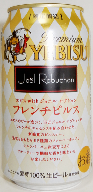 | 製造日 2019.11 | ヱビス with Joel Robuchon ジョエル・ロプション 裏面 ヱビスのビール造りに、巨匠ジョエル・ロプションがフレンチのエッセンスを組み合わせた、 新感覚のピルスナー。果実をおもわせる2種類のフレーバーホップと、シャンパーニュ産麦芽によるフルーティで繊細な香りと味わいをお楽しみください。 | |