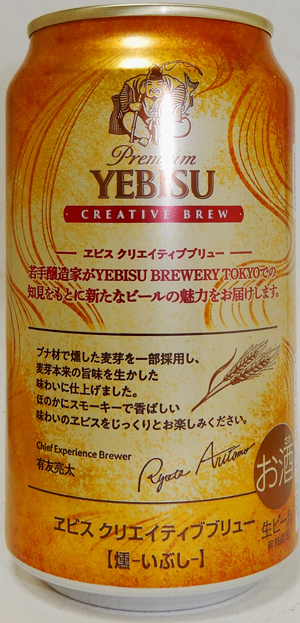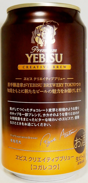 | 製造日 2024.11 | CREATIVE BREW 焦がしてつくったチョコレート麦芽によるカカオのような香り 若手醸造家がYEBISU BREWERY TOKYOでの知見をもとに新たなビールの魅力をお届けします。 有友亮太 裏面 | |