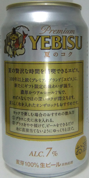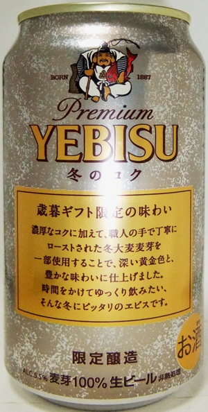 | 製造日 2010.10 | [限定醸造] PREMIUM YEBISU Alc. 5.5% 麦芽100% 昨年と同じデザインでしょうか・・・。 | |