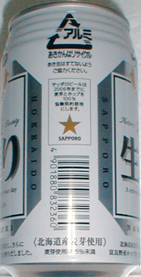 | 製造日 2002.3 | 北海道産麦芽を使用して、爽やかな生を搾りだしました。 バックが白地でしたが、白とシルバーのストライプに変わりました。違いはこちら | |