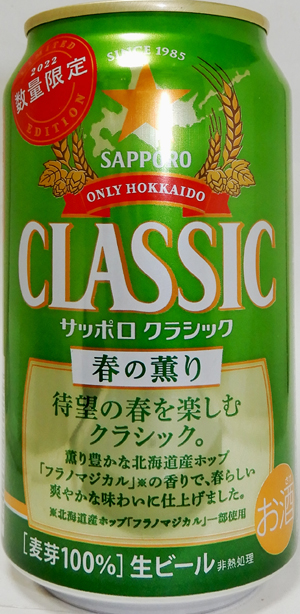 | 製造日 2022.3 | 2022 数量限定 裏面 待望の春を楽しむクラシック。薫り豊かな北海道産ホップ「フラノマジカル」の香りで、春らしい爽やかな味わいに仕上げました。 | |