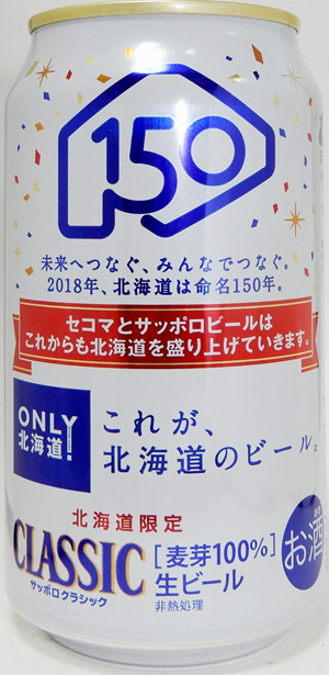 | 製造日 2018.4 | 未来へつなぐ、みんなでつなぐ。 2018年、北海道は命名150年。 セコマとサッポロビールはこれからも北海道を盛り上げていきます。 ONLY 北海道 これが北海道のビール。 | |
