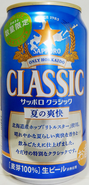 | 製造日 2022.5 | 2022 数量限定 裏面 北海道産ホップ「リトルスター」使用。晴れやかな夏らしい爽快な香りと飲みごたえに仕上げました。今だけの特別なクラシックです。 | |