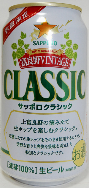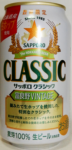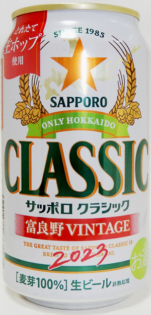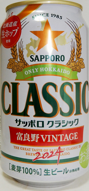 | 製造日 2024.10 | 北海道産生ホップ使用 裏面 富良野の摘みたて生ホップをそのまま使用することで、芳醇な香りと爽快な後味を両立させた特別なクラシックです。 | |