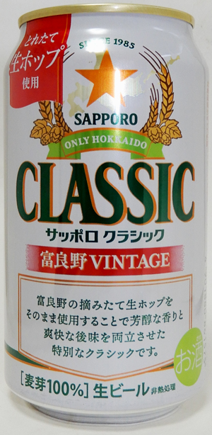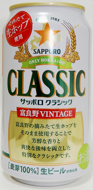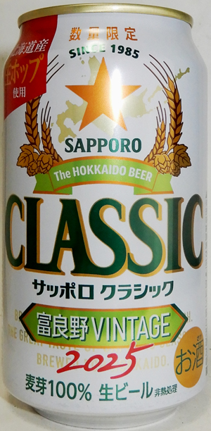 | 製造日 2025.9 | 北海道産生ホップ使用 裏面 摘みたて生ホップを使用した、特別なクラシック。富良野で収穫しての生ホップをそのまま使用し、芳醇な香りと爽快な後味をお楽しみください。。 | |