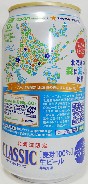 | 製造日 2017.8 | コープさっぽろ SAPPORO共同企画 コープさっぽろのクラシックを飲んで 森に海に乾杯! | |