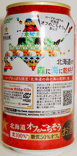| 製造日 2019.6 | コープさっぽろ SAPPORO共同企画 コープさっぽろの北海道 オフのごちそうを飲んで 北海道の森に海に乾杯! | |