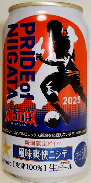 | 製造日 2025.1 | PRIDE of NIIGATA 2025 サッポロビールはアルビレックス新潟を応援しています。 | |