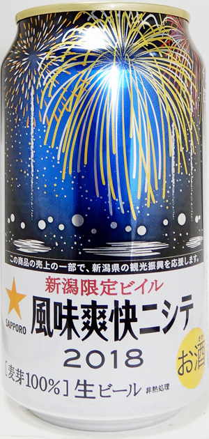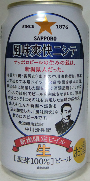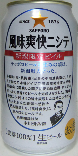 | 製造日 2014.9 | 愛してる新潟! サッポロビールはアルビレックス新潟を応援しています。 「風味爽快ニシテ」の字体が変わりました。 | |