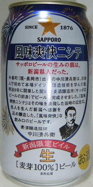 | 製造日 2013.5 | 裏面サッポロビールの生みの親は、新潟県人だった。 麦酒醸造技師 中川清兵衛 | |