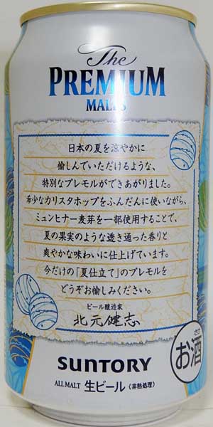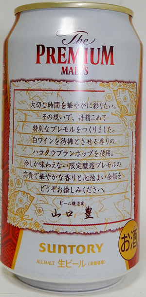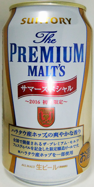 | 製造日 2016.4 | 2016 初夏限定 天然水100%仕込 裏面 ハラタウ産ホップの爽やかな香り 全国で開催されるザ・プレミアム・モルツフェスティバルを記念した限定醸造ビールです。 | |