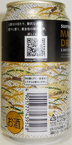 | 製造日 2022.7 | MASTER'S DREAM 希少なダイヤモンド麦芽のおいしさ。深いコクと上質な味わい。 裏面 | |