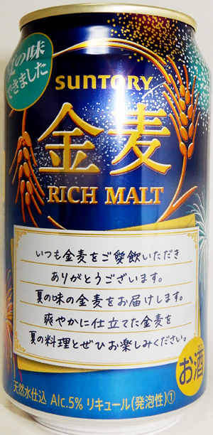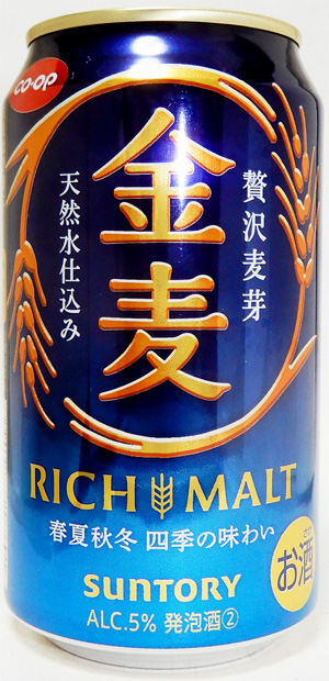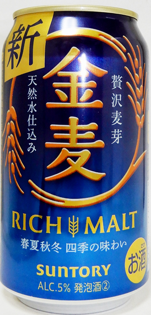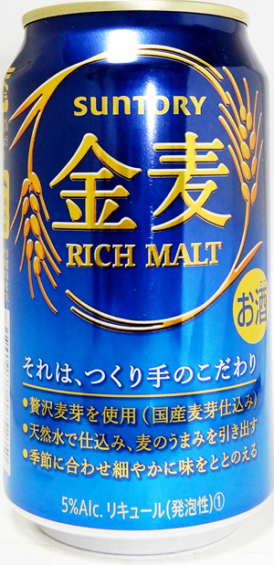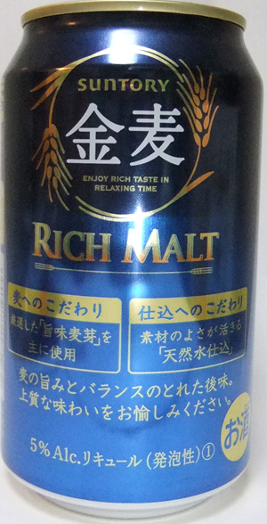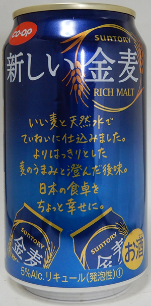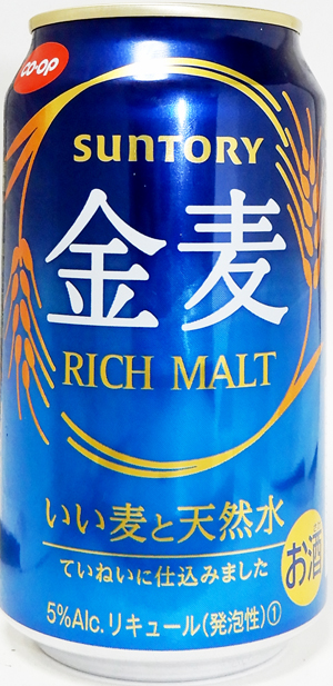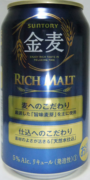 | 製造日 2019.1 | RICH MALT いい麦と天然水 ていねいに仕込みました。 裏面 新しい金麦 | |