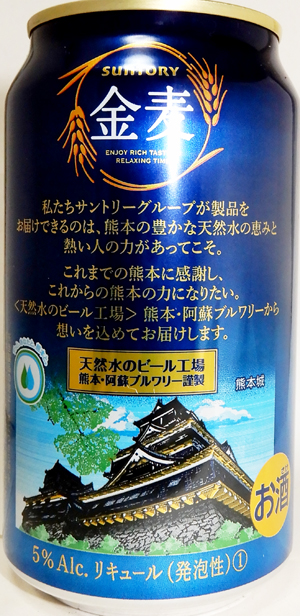 | 製造日 2018.3 | 天然水のビール工場 熊本・阿蘇ブルワリー謹製 熊本城 私たちサントリーグループが製品をお届けできるのは、熊本の豊かな天然水の恵みと熱い人の力があってこそ。 これまでの熊本に感謝し、これからの熊本の力になりたい。<天然水のビール工場>熊本・阿蘇ブルワリーから想いを込めてお届けします。 | |