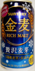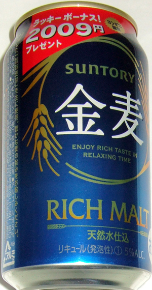 | 製造日 2009.3 | RICH MALT 天然水仕込 厳選した「旨味麦芽」を主に使用。豊かな麦の旨味をお愉しみください。 リキュール(発泡性)@5% ALC. | |