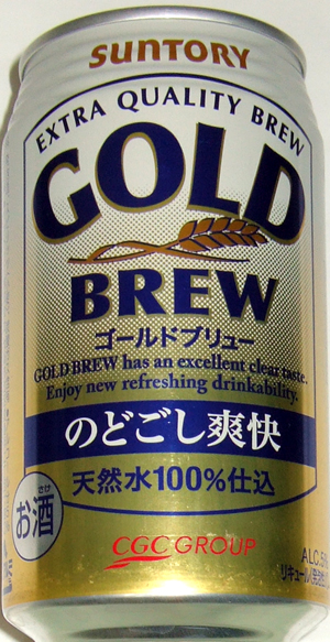 | 製造日 2008.11 | のどごし爽快 天然水100%仕込 CGC GROUP GOLD BREW has an excellent clear taste. Enjoy new refreshing drinkability. リキュール(発泡性)@5% ALC. | |
