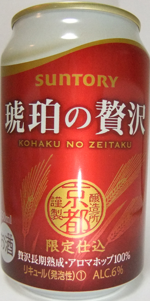 | 製造日 2010.9 | 醸造所京都謹製 限定仕込 贅沢長期熟成・アロマホップ100% リキュール(発泡性)@ ALC.6% 天王山・京都西山の麓、京都ビール工場において数量限定で製造しています。当社主要新ジャンルと比べ、原材料となる発泡酒の熟成期間の規準を5割長くし、素材本来の旨味をじっくりと引き出しました。 | |