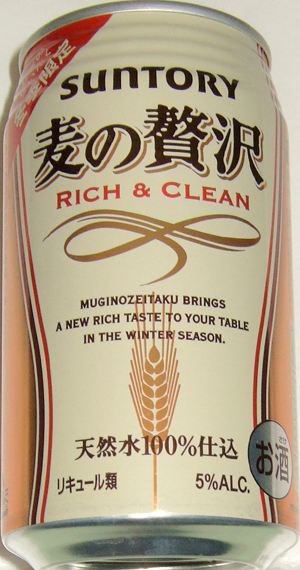 | 製造日 2005.11 | むぎのぜいたく 冬季限定 RICH&CLEAN 天然水100%仕込 リキュール類 5%ALC. お酒 コク・うまみのある味わいをお楽しみ下さい。 | |