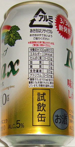 | 製造日 2012.3 | クリアテイスト ローリングホップは、柑橘系の爽やかな香りと、苦味を抑えたスッキリした味わいが楽しめる新ジャンルです。 表面 | |
